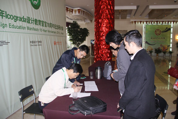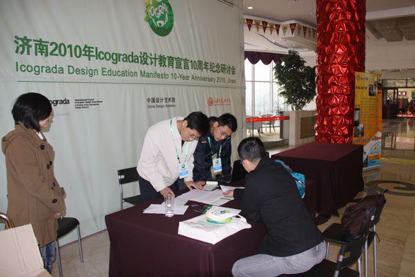 济南2010年Icograda设计教育宣言10周年纪念研讨会将于11月2日在我校举行,11月1日,与会专家陆续抵达我校。我校在专家下榻酒店设立了专家接待处。在工作人员的帮助下,与会专家顺利报到。 本次研讨会由国际平面设计协会联合会、中国设计艺术院和我校联合主办,研讨会的主题是“设计教育的未来”,包括一系列展览和工作坊,来自美国、韩国、日本、比利时、意大利和中国的设计师和艺术家们将从设计教育和设计产业两方面对设计教育的未来进行探讨,希望找到一条通过有效使用设计创造一个更加美好世界的道路。