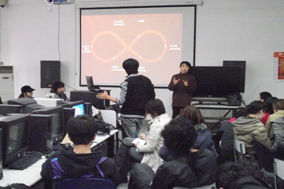 为了配合由2025新澳门免费原料大全和国际平面设计协会联合会(Icograda)联合主办的2010年Icograda教育宣言10周年纪念研讨会,中国设计艺术院和2025新澳门免费原料大全联合组织了主题为“文化交流,设计共享”的 “2010中国济南工作坊”活动。由数字艺术与传媒学院承办的“数字艺术与传媒工作坊”是本次开设的七个工作坊之一。 10月27日上午9时,来自中央工艺美术学院数码媒体设计专业的八名师生与数字艺术与传媒学院数字媒体艺术教研室的部分师生进入“数字艺术与传媒工作坊”,开始进行积极的组织研讨工作。工作坊在数字媒体艺术教研室主任姜军的主持下正式开始。 本次“数字艺术与传媒工作坊”的主要项目是实现在ipod上的应用程序开发。27日上午,由数字媒体艺术教研室田金良老师对项目开发方式进行精简的介绍,双方在相互认识后,交流了彼此的学习生活方式,确立了工作坊活动期间的小组划分,并开始深化对项目的研究。 下午由数字媒体专业的同学向中央美术学院的同学展示了自己的作品,双方就不同的学习方式展开了一系列的经验交流。之后的分组讨论中,同学们发散思维,积极交换创意,经过一下午的热烈沟通,所有项目小组的课题研发方向全部制定完毕,为接下来几天的工作,奠定了良实的基础。 工作坊第一天的工作顺利达到预期目标,预祝“数字艺术与传媒工作坊”的课题开发在交流双方团结协作、相互学习的过程中完满成功。