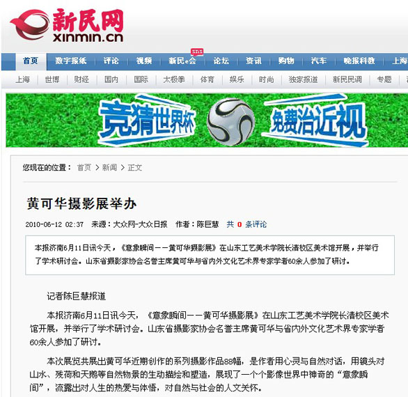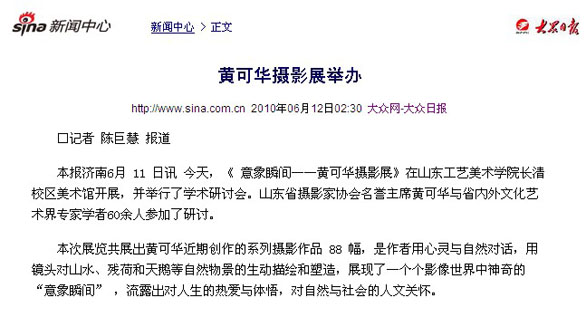 新浪网:黄可华摄影展举办