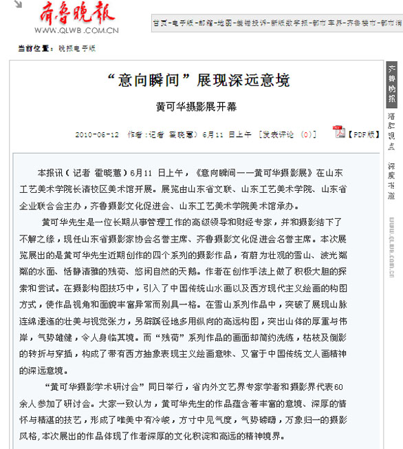 齐鲁晚报:“意象瞬间”展现深远意境——黄可华摄影展开幕