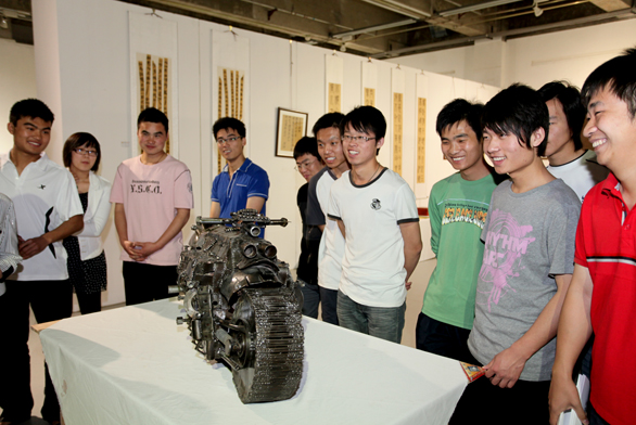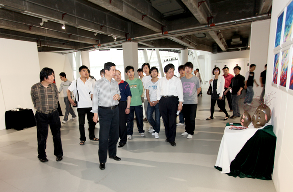 5月10日上午,党委书记于茂阳来到学校美术馆参观正在展出的我校2010届毕业生作品展,并与参观师生进行了亲切的交流。 于茂阳书记饶有兴致地参观了视觉传达设计学院、建筑与景观设计学院、工业设计学院、服装学院、造型艺术学院、现代手工艺术学院、数字艺术与传媒学院、人文艺术学院、应用设计学院9个教学单位本专科学生和研究生作品,并参观了学校实践教学基地以及我校服务十一运会、世博览会山东馆成果展览。每到一处,于茂阳书记都仔细端详,时而微笑点头,时而给予点评,不时向指导教师及同学询问作品创作的相关问题。 于茂阳书记充分肯定了本届毕业展的成绩和2010届毕业生的学习、创作成果。于茂阳指出,本届毕业生作品展举办得相当成功,涌现出来大量创意独特、设计新颖、做工精细,并能将设计与生活紧密联系在一起的高水平设计作品,体现了2010届毕业生较强的动手能力和创新能力,同时也向社会展示了我校的教学成果,取得了良好的社会反响。 于茂阳书记在参观过程中与现场的毕业生进行了交流,给他们提出了建议和意见。于茂阳指出,作品创作要敢于突破传统观念的束缚,要敢于在形式、材质、笔墨、线条等方面进行创新,要敢于在创新中表达自己的思想。于茂阳要求教师在教学中要加强对学生的引导、点拨,注意锻炼学生的创作能力和综合素质,培养高素质的设计人才;勉励毕业生再接再厉、不断创新,创作出更好的作品,适应社会需要,引领社会生活;鼓励在校学生加强学习、学以致用,不断提高自己的专业素质和实践能力,为将来就业创业打下坚实的基础。 部分教学单位负责同志陪同参观。