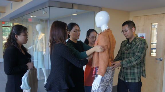 受拉塞尔学院及Anne Trevenen教授的邀请,2013年11月18日,我校服装学院与美国拉塞尔学院服装系的中美合作交流项目代表团携带合作课程的成衣作品前往拉塞尔学院举办课程汇报展览。抵达波士顿后,代表团即投入了紧张的备展工作。18日上午,在拉塞尔学院服装系会议室,双方就展览的作品、展板、海报等进行了认真交流和准备,下午顺利完成了布展工作。美国拉塞尔学院服装系及Anne Trevenen教授对课程教学过程非常满意,并对这些课程作品给予高度赞赏。