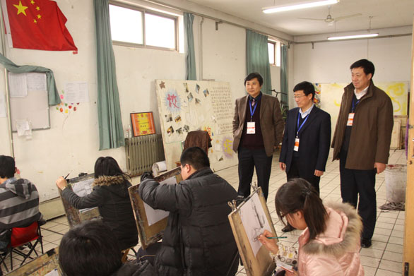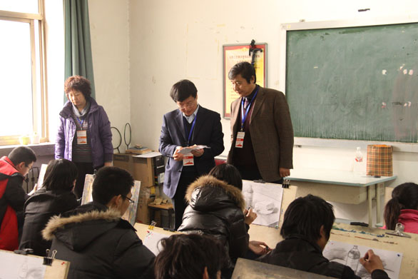 2月25日下午,我校2010年招生专业考试第二天,部分考生在应用设计学院分院考点参加考试。下午3:00,副院长张云龙,院长助理、办公室主任王立果来到应用设计学院分院考点巡视,检查指导考试工作。省电影学校党委书记、校长安立元陪同巡视。