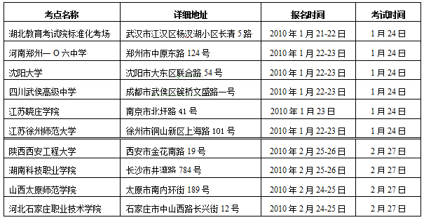 说明:(1)河北、江苏、湖南省教育考试院规定,本省考生必须在本省内考点参加专业考试,在其他省市考点参加考试成绩无效。 (2)石家庄考点只接收河北籍考生参加考试;郑州考点只接收河南籍考生参加考试。