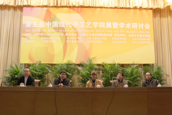 12月25日下午,第五届中国现代手工艺学院展学术研讨会在我校长清校区学术报告厅召开。清华大学美术学院副院长何洁、杭间,南京艺术学院副院长、工业设计学院院长何晓佑,天津美术学院纪委书记、设计艺术学院院长李炳训,我校院长