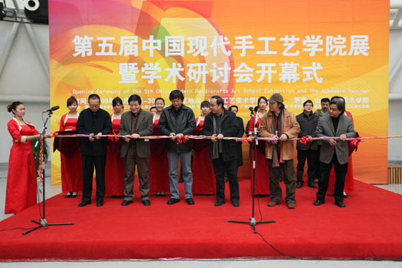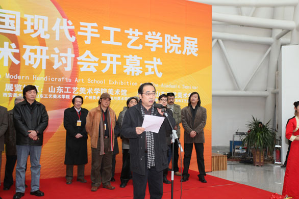 12月25日上午,第五届中国现代手工艺学院展暨学术研讨会开幕式在我校长清校区美术馆举行,清华大学美术学院副院长何洁、杭间,南京艺术学院副院长、工业设计学院院长何晓佑、设计学院院长邬烈炎,上海大学美术学院院长汪大伟、副院长黄建平,苏州工艺美术职业技术学院院长廖军,天津美术学院纪委书记、设计艺术学院院长李炳训,西安美术学院代表邢戈,工艺美术大师霍铁辉、王绪德、张广庆、张文明、牟湘波、刘克唐以及我校院长潘鲁生,副院长苗登宇,院长助理、办公室主任王立果出席开幕式,开幕式由我校副院长李新主持。 院长潘鲁生致辞,他表示,希望借助中国现代手工艺学院展打造更广阔的研究与交流平台,推进艺术理念、工艺思想、文化视野的交流,弘扬手艺传统,承传造物文脉,在文化积淀与技艺锤炼的基础上,进一步激发创新的理念和深邃的思考,彰显个性,抒发性情,推进艺术语言与造物技艺的创新和实践。他指出,在当下文化与经济发展进程中,手工艺已经成为创意经济时代富于生机和活力的新的主体,是全球化语境中文化根脉的生动表达,是信息技术条件下艺术创作与工艺制作创新发展的路径,是技与艺的新的融合,是艺术与设计沟通的桥梁。本届展览主题为“走进手工作坊”,这一主题让我们感悟到,当传承与探索并进,当传统与现代共融,当先进技术与传统技艺交织,手工艺还将迎来新的发展契机并承担新的历史使命。 清华大学美术学院副院长何洁讲话,他指出,中国现代手工艺学院展已连续举办五届,每届不同的主题充分反映了五所学院对新时期全球背景下手工艺术及手工艺术教育的思考与探索,展览越来越受到社会的关注和有关政府部门的重视,显示出特有的生命力和影响力。我国现代手工艺教育始自清末中国社会向现代形态转变的时期,今天我们又处在新的社会转型期,站在社会的角度,考量现代手工艺教育的可持续发展,探讨手工艺术的当代性问题,是新的课题。当前我国正推进由“制造大国”向“创造大国”的转型,“十一五”规划把发展文化产业作为调整经济结构的重要举措,从中央到地方出台了一系列鼓励文化产业发展的政策措施,手工艺术教育也迎来前所未有的挑战和发展机遇。中国现代手工艺学院展搭建了一个互动交流的平台,今后还要将活动范围扩大到东方及全球,进一步推动手工艺术教育的发展与提升,在国家经济与文化建设中更加体现出其自身的双重价值。 何洁、何晓佑、汪大伟、李炳训、廖军、潘鲁生为展览开幕剪彩。 开幕式结束后,嘉宾参观了展览。 中国现代手工艺学院展由我校与清华大学美术学院、南京艺术学院、上海大学美术学院、西安美术学院共同主办,已连续举办五届,历届主题分别为“传承与超越”“传统与时尚”“返手归真”“精工造物”,本届展览由我校承办,主题为“走进手工作坊”。本届展览暨研讨会还邀请了四川美术学院、广州美术学院、天津美术学院、鲁迅美术学院、苏州工艺美术职业技术学院专家领导及多位工艺美术大师参与。本届展览共展出作品200余件,展品包括玻璃、陶瓷、漆艺、首饰、纤维、金工、木艺等门类,是我国手工艺教育以及行业领域最新的成果展示。本次活动期间,还将围绕弘扬传统文化、保护民间手工艺、促进设计教育发展和工艺美术产业升级等话题进行学术研讨。 我校及兄弟院校的教师、学生代表,以及来自新华社、中新社、中国文化报、大众日报、山东人民广播电台、山东电视台、山东教育电视台、齐鲁晚报、人民网、大众网等中央及省市各大媒体的记者参加了开幕式。