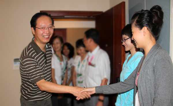 9月4日晚,山东省政府副秘书长、世博山东馆馆长韩金峰视察山东馆并慰问了工作人员。韩金峰到工作人员住处看望大家,详细询问了安全运营的有关情况并对山东馆下一步的工作提出要求。