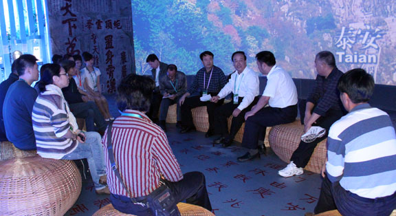 10月4日,山东省公安厅副厅长、山东馆执行副馆长任学增到山东馆检查工作,并参加了山东馆今天的例行晨会。 每天早九点的例行晨会,是山东馆运营团队一直坚持的制度,旨在总结前一天情况并部署当日工作。任学增在晨会上认真听取了安全保卫、服务、撤展、拆迁等工作汇报,并就安全、服务、责任感等方面的注意事项做了指示,一定把山东“礼仪之邦”的形象展现出来,保证展馆的各项工作圆满、顺利完成。