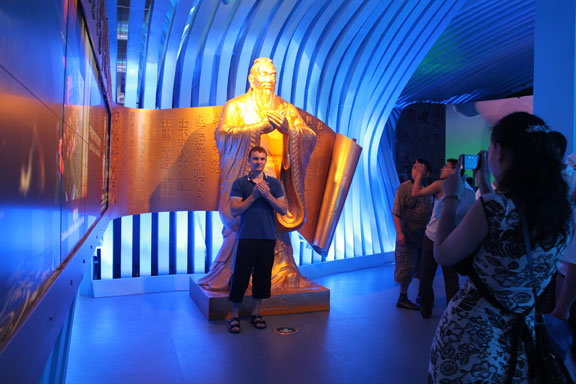 连日来,热浪席卷,上海气温增至38度,世博会观展热潮高涨,山东馆游客接待量突破300万,在展馆风向标中高居榜首,再度成为暑期观展潮中的热门场馆,有如酷暑中一股蓝色旋风,形成强劲的“山东效应”。 “山东馆不需要排队”、“山东馆有孔子像”、“山东馆可以打球、下象棋”、“山东馆展示了尖端科技”,参观者如是说。面对日平均逾3万人的游客接待量、世博官网展馆风向标逾5.5万的投票和普通观众的热情评价,山东馆常务副馆长、设计总监、我院院长潘鲁生指出,“广大参观者的热情充分印证了我们最初的设计理念,那就是以山东馆为窗口,充分展示,充分交流,深度对话,深入合作”。 事实上,当孔子像成为合影热点,当鲁班锁吸引参观者驻足拍照,当孩子们询问《论语》名句的含义,在互动展项前点击了解卯榫原理,古老的传统智慧就再一次被聚焦激活,散发魅力。当皓首老人在山东城市影像前鼓掌,当山东籍游客骄傲地介绍“这是咱们山东馆”,山东的精神、山东的凝聚力、山东“和而不同”的家园理想就得到了最生动的印证。还有政府首脑、国际企业负责人专程到访,了解山东设计、山东科技、山东产业和山东的发展理念,山东馆全面、立体的展示即就此发挥持久的效力。 谁能说600平米的规定空间有限?“岱青海蓝”的艺术语言贯通了从历史走向未来的齐鲁文脉。谁能说百万客流的观展时间有限?孔子像前驻足,精密展项下凝神,就是最深的共鸣、最充分的交流和互动。如果说山东馆的观展热潮是一种效应,那么这种效应就是对世博理念、设计文化的深入把握和发掘。作为人口大国举办的博览展示活动,采用开放空间,运用形象语言,注重互动参与,关注公众接受和传播,并在文化的深度、理念的高度、科技的前沿、前瞻、领先度上达到参与国际对话、专业领域交流的水平是重要的,也是可贵的。 山东馆自开馆以来,赢得孩子们喜欢,受到设计专家关注,在物联网等科技展示比肩国家展馆的同时,也在产业界、科技界再度对传统的山东、文化的山东形成新的关注。“我们希望山东馆有山东文化的精彩展示,也希望山东馆有山东经济、山东产业群的精彩亮相,让蓬勃发展的山东形象有最好的传播”,设计总监潘鲁生说,“世博会的展示有落幕时限,山东的活力将深入人心,正如这融会了山的气势、海的胸怀的展馆,未来山东将迎来更开阔广大的空间。”后续展期里、未来发展中,山东馆的展示、山东馆的展示效应令人充满期待。