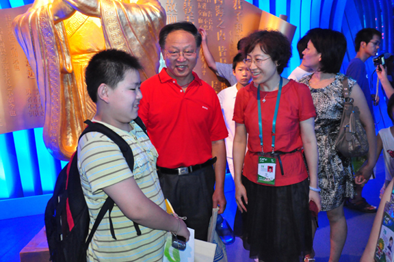 7月29日,山东馆正式运营90天,游客参观总数突破300万。山东馆执行副馆长李新主持简短庆祝仪式,为游客颁赠纪念品。