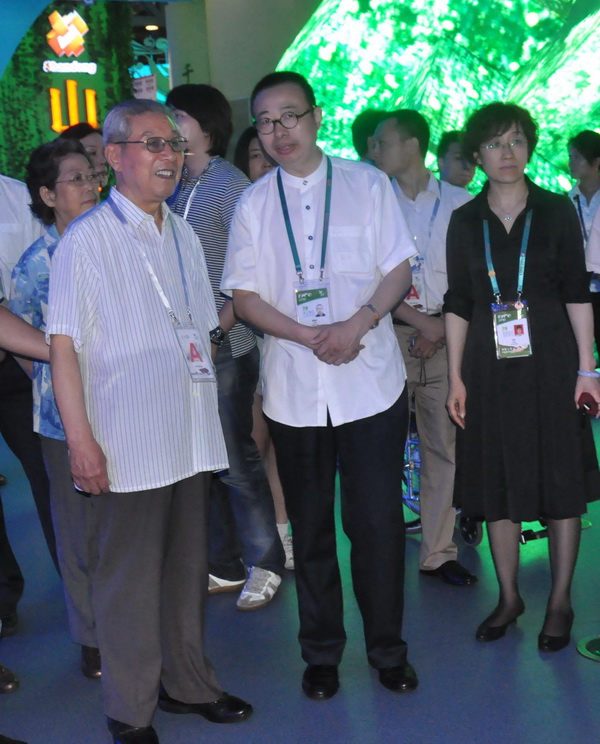 中央军委原委员、海军原政委魏金山一行访问世博会山东馆