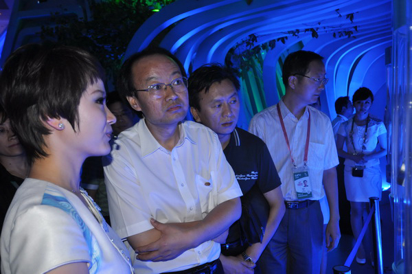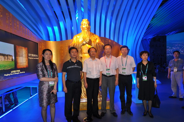 7月6日,团中央书记处书记周长奎在山东省政府副秘书长、山东馆馆长韩金峰陪同下参观世博会山东馆。上海团市委书记潘敏、团中央志工部副部长侯宝森以及上海市团市委、上海世博局团工委有关负责同志随行。山东馆执行副馆长李新及山东馆各部负责人陪同参观。