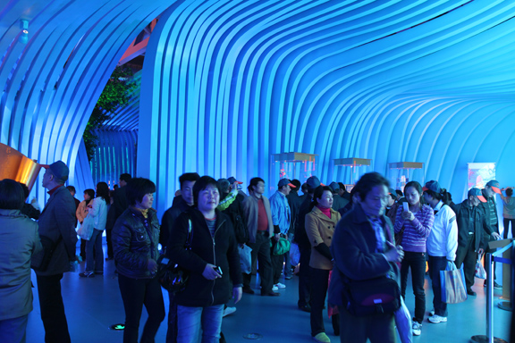 4月26日,山东馆已正式运营一周。在观众流量大、开放时间长的条件下,管理人员工作严谨、高效,整个现场秩序井然,经受住了实战的考验。运营过程中,山东馆不仅以开放、流畅、亮丽、独特的雕塑造型和精心设计的展项吸引了观众的目光,而且“齐鲁青未了”的主题也得到了广泛认可,塑造了山东热情开放的形象,传播了“智慧、创造、文明、和谐”的城市发展理念。