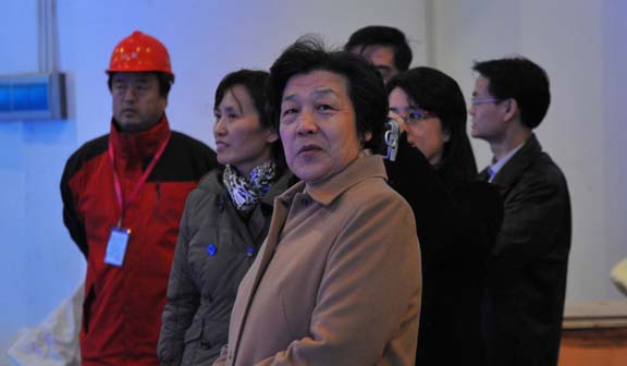 山东馆整体框架与内部展品展项,在世博园区已率先完成,目前正在深入调整之中。吴爱英部长为山东馆独特的外形,以及鲁班锁LED造型等效果所深深吸引。在山东馆外墙季羡林先生题写的“齐鲁青未了”处,吴爱英部长驻足观看,并轻声吟诵。