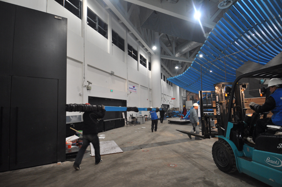随着最后一批展览物资顺利进场,世博会山东馆的展品展项布展与调试工作进入冲刺阶段,山东馆整体建设将在近期基本完成。