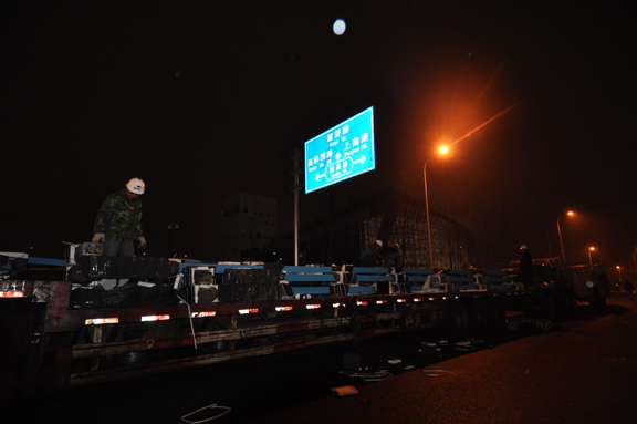 3月14日晚,由山东省交运集团代运的世博会山东馆最后一批展览物资,一行四辆卡车,在山东省公安厅的护送下顺利抵达上海世博园,并于当晚通过世博局园区严格安检,顺利进入山东馆展区。