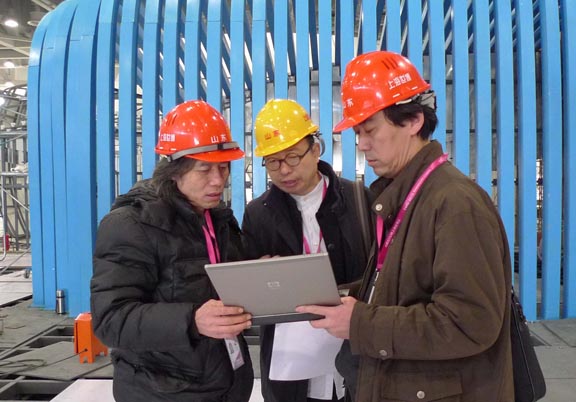 院长始终坚持在世博园省区市馆现场施工一线,深入检查、指导、协调山东馆的设计完善与施工工作,现场解决问题、部署施工。