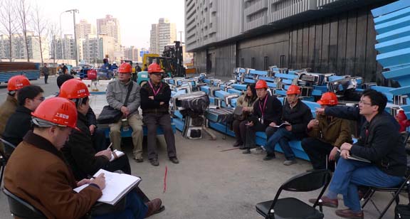 院长带队,与北京天图、青岛海尔、山东威迪、山东众成的建设与监理单位,战斗在世博园一线;北京,由项目部总指挥苗登宇副院长率领郭去尘、孙磊、