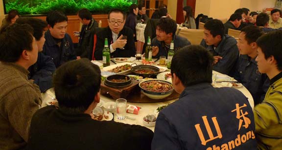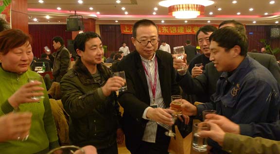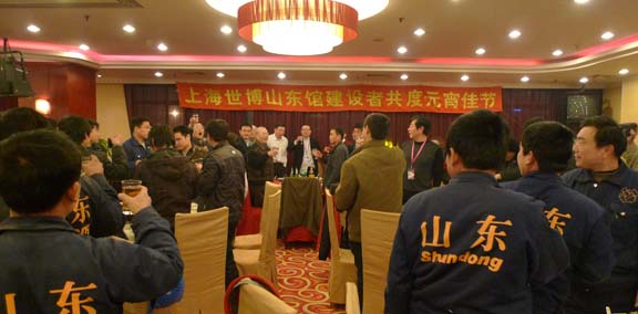 ,与省驻园办,以及北京天图、青岛海尔、山东威迪、众成监理等世博会山东馆建设者共近80人,济济一堂,在世博园区、黄浦江畔热火朝天的施工氛围中共度元宵佳节。