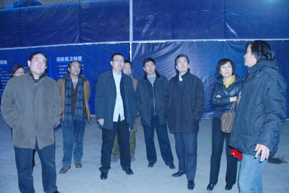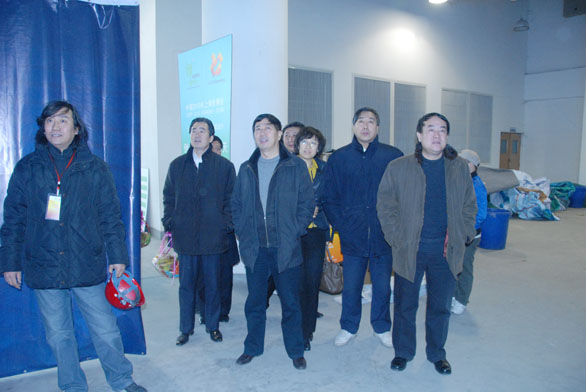 1月29日下午,我校党委书记于茂阳,党委副书记、纪委书记李世平,党委副书记杨新力,副院长李新、刁在祥、张云龙,院长助理、办公室主任王立果一行来到济南国际会展中心对世博会山东馆建设现场进行了视察,并慰问了参加建设的工作人员,省世博会参展工作领导小组执委会副主任、省文联主席我校潘鲁生院长和世博会山东馆项目部总指挥我校苗登宇副院长在建设现场与前来慰问的校领导进行了座谈。