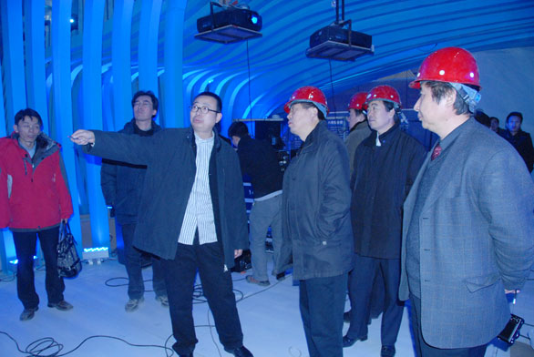 于茂阳书记一行对工作人员的辛苦工作表示慰问,并高度评价了世博会山东馆建设所取得的成就。省世博会参展工作领导小组执委会副主任、省文联主席我校潘鲁生院长对于茂阳书记一行前来慰问表示感谢,并介绍了当前的建设进度及未来的主要工作。
