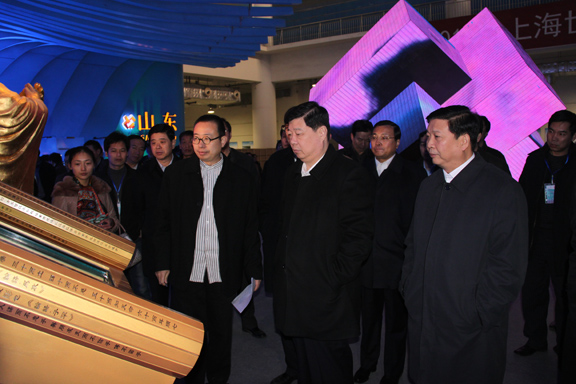 省委书记姜异康、省长姜大明等领导审看世博会山东展馆