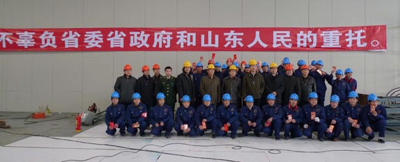 院长视察了山东馆建设情况。韩金峰副秘书长发表现场讲话,对施工单位与我校管理人员牺牲春节团圆时间,在建设工地辛勤工作,抢时间、抢工期,表示感谢。同时指出,山东馆代表着我省的形象,承载着9400万山东人民的期望,对于每一个参与世博会建设的人来讲,都是一份责任,也是一份光荣。讲话结束后,韩金峰副秘书长代表省政府向每位建设者分发了节日慰问金,并共同合影留念。