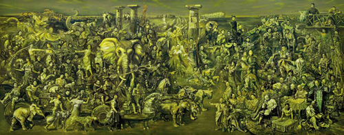 :《青铜时代把酒论英雄》,这幅作品把108位体育界英雄聚集在一起,活灵活现,非常有意思。