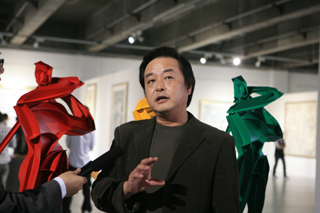 我觉得亮点就是我所采用的板式结构雕塑这一新形式,这可以说是对雕塑形式一种新的探讨。我曾经尝试用这种形式做过动物雕塑,也研究过用这种形式表现人物题材,而这次算是进一步的研究。现在我在人物上尝试体现这种形式,同时也把中国书法的线运用到其中,正好把板子立起来。