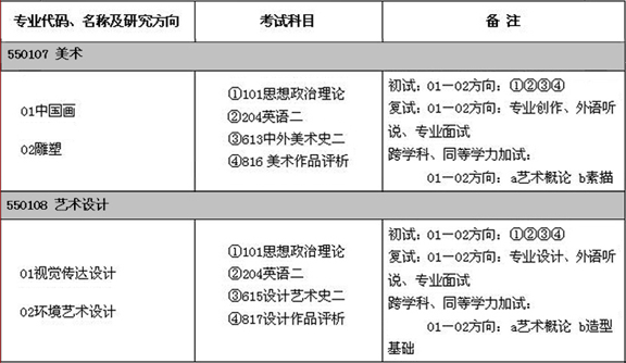 学校于2010年面向全国招收艺术学、美术学、设计艺术学三个学科的全日制学术型硕士研究生和美术学、设计艺术学全日制艺术硕士(MFA)专业学位研究生。现将全日制学术性硕士研究生和全日制艺术硕士(MFA)专业学位研究生招生考试科目和参考书目公布如下: