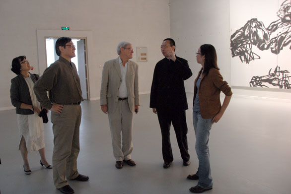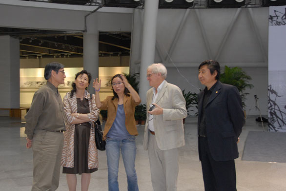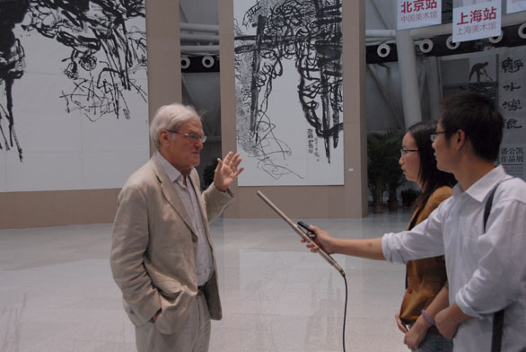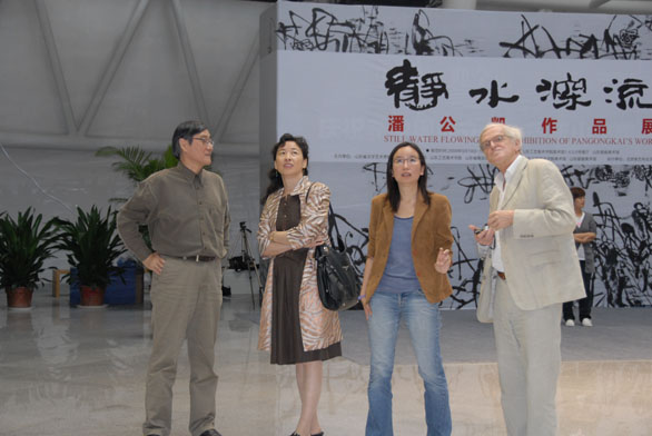 9月20日上午,世界艺术评论家协会主席HENRY•Meyric•HUGHES到我校长清校区美术馆参观正在展出的《静水深流——潘公凯作品展》,中央美术学院院长潘公凯,我校院长潘鲁生,院长助理、办公室主任王立果陪同参观。 潘公凯院长向HUGHES先生详细介绍了展出作品的艺术特色、创作情况,双方就中国美术作品的历史传统和当代发展进行了深入探讨。潘鲁生院长向HUGHES先生介绍了我校美术馆建设情况,并交流了对中国当代艺术发展情况的看法。HUGHES先生对我校美术馆的建设水平给予了高度评价。 HUGHES先生还接受了我校记者的采访,亨利先生高度评价了潘公凯先生的艺术作品,他表示,中国艺术有着悠久的历史,创造了与西方艺术风格迥异的优秀作品,当代中国艺术家更加注重国际交流,影响力逐渐增大,使中国艺术成为世界艺术不可忽略的组成部分。中国艺术的独特风格和深厚底蕴对西方艺术有着重要的借鉴作用,潘公凯先生作为当代中国有影响力的重要艺术家,其作品充分体现了中国当代的艺术精神和创作水平。