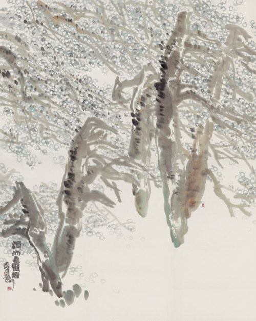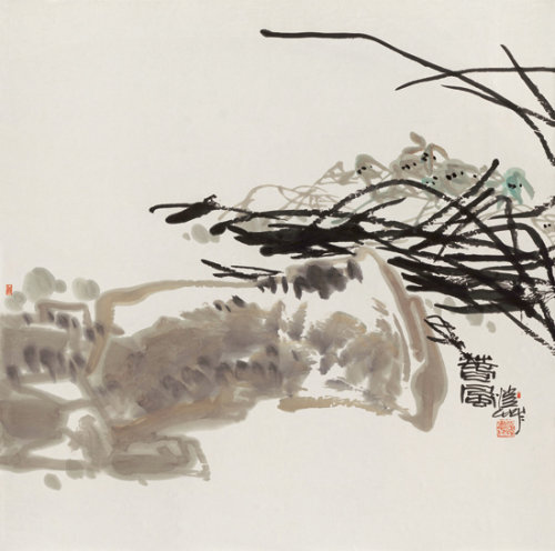 潘公凯是美术史论家出身,他的画作有着自己独到的艺术语言,但见者无不动容。画有震撼之力,虽表现的传统写意花鸟的题材,但静中寓动。其作品鲜有方折直线、鲜有干渴之笔,鲜用焦墨,多水性、多曲线、善宿墨,但让人感到的却是深厚的力道。真是静水深流,动情感悟。震撼之余,品得出高致的格调,我以为,乃当代中国文人画的境界。 称之为当代中国文人画,伴生了一种感慨,感慨当代的、中国的、文人画语境这三个概念融合、整合之难!当今画坛,虽然“汇通中西”的折衷作品不少,继承传统或勇创新境的也不少,但真正潜心静气苦心探寻当代中国绘画之境界的并得其面目者,还是太少了。中国结束封建政体,开始现代民主建构已逾百年,而与之相呼应的具有当代气质的中国绘画尚未显峥嵘。当代中国文人画则更为罕见。一方面,能称得上当代中国文人者,必是得传统文人之精神真昧,一脉相承,而又顺乎时代的演进,体现出发展性、当代性之文化精英;另一方面又必须是在传统绘画的骨子里真正自然生长出的适应当代审美与精神需求的水墨之语境。多方修为所致。 潘公凯的画根正苗清。根在哪儿?在于传统中国文化精神与传统中国绘画。传统中国绘画的根本宗旨又何在?潘公凯对此做了近四十年的探索。从“绿色绘画论”中对中国传统文化作为人类多元精神文化方式之一和与西方不同的文明体系的思考,提倡中西文化差异互补;到“在挤压中延伸”、“在限制中发展”对中国百年绘画传承发展之研究,置身于历史与政治变迁的文化大格局中,强调中国绘画在与西方艺术融合的同时关注传统的自在与其现代延伸;再到“中国现代美术之路”对中国绘画“现代性”建立的思考。潘公凯以美术史论家的视野构建了他的艺术理论与实践探索之维。他的文与他的画对当代中国绘画艺术语言的确立具有同样重要的意义。在近四十年思考中国绘画的传承与当代语言建构的过程中,他寻到了传统文人画。他认为文人画是中国传统绘画与传统文化精神的最高代表。 中国传统文人画的根本宗旨在于写心而非写物。此“心”与景、境、格相通融,中国绘画语言最重要的是表现画家的人格情怀。陈师曾先生在上世纪初中国绘画变革、西学之潮风起云涌之时,就曾明言文人画“第一人品,第二学问,第三才情,第四思想”,近百年后,一批文化人在积极的探索与实践,潘公凯与之相呼应:“在中国,对艺术和美的观念,从一开始就是同道德观念联在一起的。在西方,美接近于真;在中国,美则接近于善”,“自古以来,中国绘画中的‘自我表现’就是‘人格映射’……亦即人格的外化,由人格表现而完成作品。”而中国意义的完善人格是走向人心性内在的和谐与超越。 熟悉潘公凯的人都知道,他对文人画,或者说中国传统绘画、中国文化精神旨要的这种理解,与家学传承,与他个人性的精神特质有着必然的联系。他是一个纯粹的中国文人,今天我们称之为知识分子。他始终追求的是精神的自我完善,“我从小就奠定了自己的精神理想:试图通过个人的修养觉悟,自觉地实现社会共同的价值定向,谋求人与自然、人与社会的和谐,将超越于欢乐与痛苦之上的精神探索,看成是一已的精神修养。最终达到精神生活对物质生活的超越,整体的统一对局部的矛盾的超越,有限的人生对无限的时空的超越。”“能够建立在此世的、此岸的基础上的终极关怀,大概只能是在为群体做出贡献的过程中完善自我”。这种历史使命感与社会责任感,正是对传统中国文人真正精神的继承,也是当代中国知识分子最需保有的真挚。 潘公凯的画在形式架构、笔墨章法以及概念表现等方面已脱陈出新,具大家风范,在他中国知识分子情怀的统摄下,他的画更重在感悟。悟格调,悟缘由。缘于此,我以为,潘公凯的艺术创作以及他的艺术探索之路具有示范意义,尤其他作为艺术教育家、美术学院之院长。当今中国,经济快速腾飞,社会迅猛转型,人才迅捷成长。高等艺术教育也同样面临着专业教育与全面人格塑造的协调与补充。在这个快速变化的时代,潘公凯用自己执着探索、勇于超越的学术历程,向社会,向艺术学子再次昭示了纯粹艺术的功能与价值,相信会引发更多的人思考什么是艺术。我想,这是他在当代的意义。