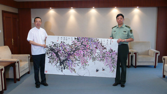 院长将画作题字“国花迎春”赠送人民解放军驻澳门部队