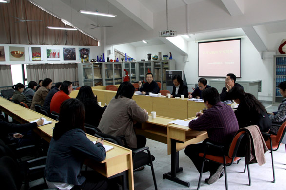 现代手工艺术学院院长段建华首先就本单位学习实践科学发展观有关情况进行汇报,主要内容包括新一届领导班子工作目标、工作措施、学科建设、师资队伍建设、科研创作、社会服务、实践教学运行及发展中遇到的困难和不足等方面。