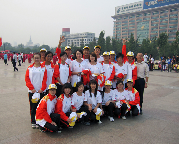 2009年9月18日,我校20名十一运赛会志愿者在团委李忠诚老师带领下前往泉城广场参加十一运会“全民全运”主题活动彩排。在那里,十一运组委会开展了一项由老年人参加的全民全运活动。我校20名志愿者同老年人进行了活动演习。