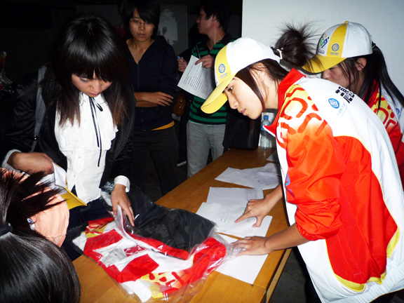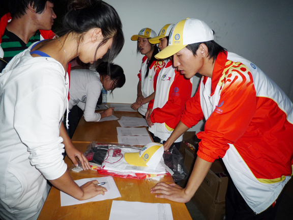 志愿者服装发放开始后,大家都排好队,井然有序地领取自己的衣服,现场气氛严肃而充满激情,拿到志愿者服,就会有一种光荣而神圣的使命感。此时此刻,我想每一位全运会志愿者,无不为之激动和振奋,无不感到骄傲和自豪。在工作人员的努力下,在志愿者的密切配合下,历时一个多小时的志愿者服装发放仪式顺利结束。