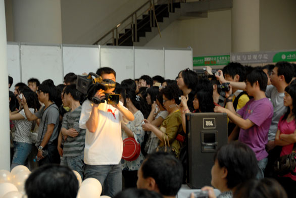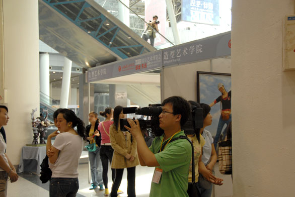 近年来,我校开放办学的模式吸引了越来越多社会媒体的关注。在会场上随处可见媒体记者肩扛摄像机、手持照相机抓拍、跟拍的场景,成为博览会上一道独特的风景。媒体记者以其专业的视角记录了博览会的盛况,还对我校领导、相关部门和单位负责人进行了现场采访。与会记者们纷纷表示,由高校主办艺术博览会的尝试在省内是首创,在国内也是不多见的。学校将毕业展与就业推介会同步举行,更是为用人单位和毕业生搭建了一个就业与创业的平台。记者们希望通过对此次活动的宣传,呼吁全社会更多地关心毕业生这一特殊群体,共同为毕业生就业创造更多更好的条件。
