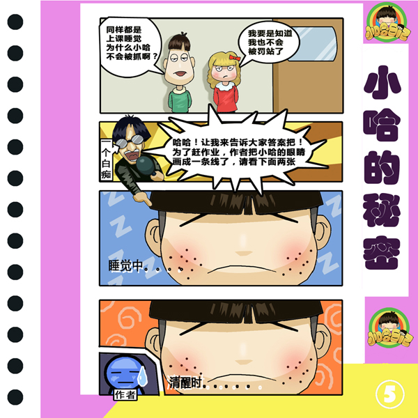 魏:《小哈日记》是我大二上学期的作品,也是刚刚开始接触电脑绘画第一个比较完整的作品,《小哈日记》是根据我跟周围朋友的日常生活遇到的一些好玩的事情,用四格漫画的形式表现出来的一个作品,类似于漫画日记,当时创作的时候纯属是觉得很有意思,发给朋友们看看而已,后来遇到这个比赛刚好符合要求就投稿了。