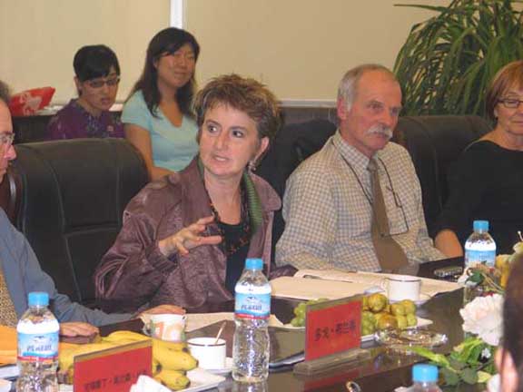 、研究生处处长唐家路、图书馆副馆长彭冬梅与来访的美国俄勒冈大学建筑与艺术学院院长弗兰西斯•鲁奈特、执行院长多戈•布兰蒂、艺术系主任凯特•瓦格勒、卓丹施尼策艺术博物馆馆长大卫•格拉维斯•特纳、中佛罗里达大学遗产联盟中心主任克瑞斯汀•高兰森•从东等人共同出席了座谈会。双方就民艺的数字化保护与发展以及未来的合作研究领域进行了亲切的交流并取得了良好的效果。座谈会由中国民艺研究所副所长赵屹主持,我院人文艺术学院年轻教师荣新及全体研究生也参加了此次座谈。
