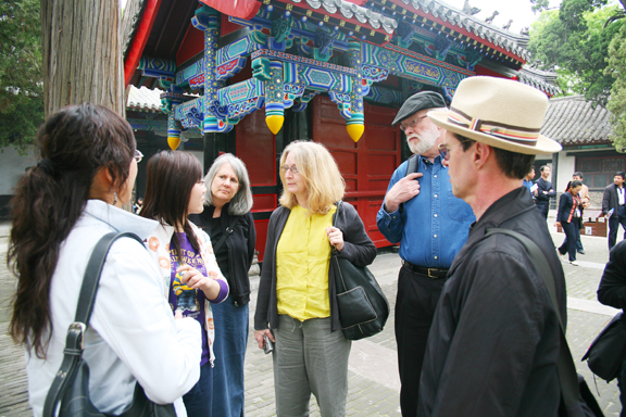 在山东曲阜孔子故里,副所长赵屹向“中国民艺国际视频网站——中国藤”项目组成员详细介绍了中国伟大的思想家、政治家、教育家孔子及其思想对后世产生的深远影响。美国项目组成员对孔子以“仁爱”为核心的儒家学说表示出极大的兴趣,并对于孔府孔庙的传统建筑布局、建筑风格与各种木雕、石雕、砖雕的建筑装饰充满喜爱。