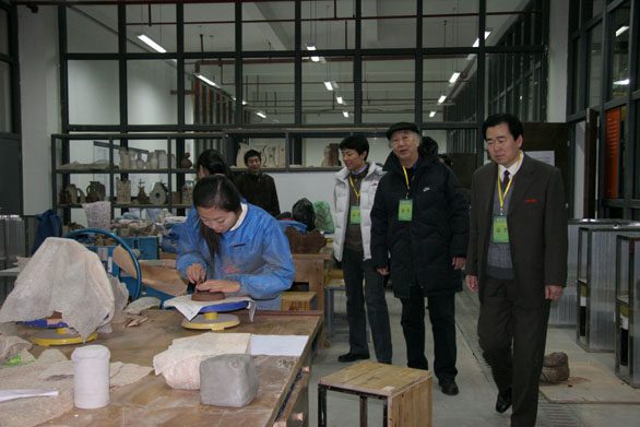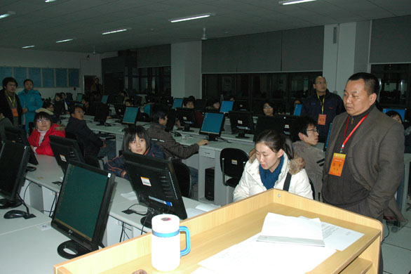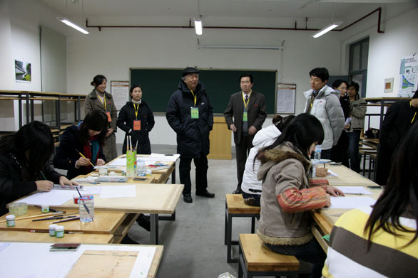 12月24日晚,评估专家组组长、清华大学美术学院杨永善教授,评估专家组成员、中央美术学院设计学院副院长许平教授、评估专家组秘书张勇,在我校长清校区教学楼一楼及综合实验室对我校随机抽取的部分学生进行了专业技能和计算机技能测试。院长潘鲁生、副院长刁在祥陪同评估专家查看了考试现场。 测试开始前,评估专家认真检查了考生的学生证、准考证等考试证件。评估专家组组长、清华大学美术学院杨永善教授主持了7场技能测试,测试题目包括针对视觉传达设计学院学生的《设计〈鲁迅小说集〉封面》和《用黑体字写出“字体设计”》、针对工业设计学院学生的《设计一个书桌上的台灯》、针对造型艺术学院学生的《男青年头像写生、动态速写》、针对现代手工艺术学院学生的《设计一件插花用器》和《设计一幅窗帘装饰图案》、针对数字艺术与传媒学院学生的《默写一幅孙悟空的动画造型》,测试内容主要考察设计、美术相关专业学生的设计能力和创意水平。 评估专家组成员、中央美术学院设计学院副院长许平教授主持了计算机技能测试,许平教授进入考场后首先询问了计算机网络连接情况和试题内容,并认真检查考题。计算机技能测试内容主要是Powerpoint演示文稿操作和互联网基础知识,侧重于考查学生动手操作能力。许平教授表示,这次测试题目操作性强,能够检验出学生对计算机的使用能力。 测试过程中,评估专家认真巡视了各测试现场,仔细查看了同学们的测试情况。整个测试现场秩序井然,参加测试的同学态度认真,严守考纪。 技能测试结束后,评估专家对测试过程中我校学生表现出来的良好的考风、考纪表示满意,并对我校的测试组织工作给予了充分肯定。