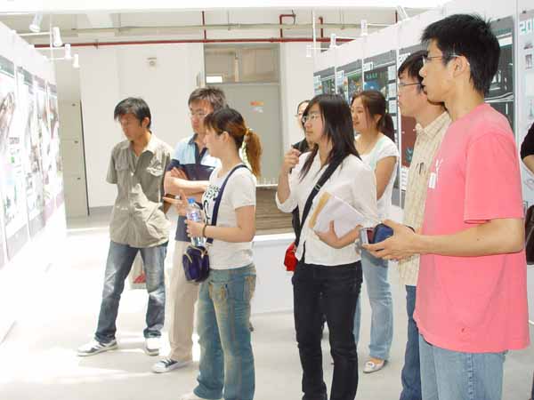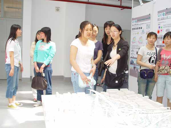 交流会在一种愉悦的气氛下,采取互动的形式进行。低年级同学在参观中细心学习,通过参观发现自己专业上存在的不足,进而主动发问及时解决问题。一个个建筑模型,一件件设计精华,看到毕业生作品中巧妙的构思,合理的布局,再加上精细的做工,体现出的不仅仅是他们四年学业的硕果,更是他们严谨端正的态度和精益求精,追求完美的精神。在谈到建筑与环境的结合时,一位毕业生代表指出:建筑不能孤立于环境之外,应该联系环境,生存于环境之中,与环境融为一体。