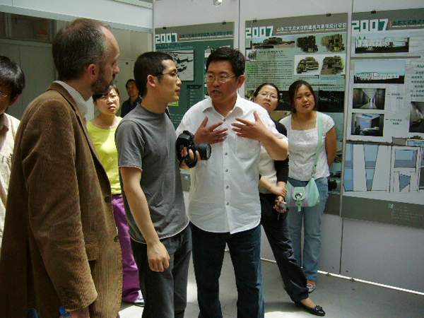 参观期间,相关专业的同学与黑尔教授进行了互动提问。黑尔教授指出现代科技技术手段与手绘同样重要的。手绘在思路的形成时期很重要的。电脑则可弥补手绘无法直观表达的建筑效果的缺憾,弥补手绘不能精确的弊端。