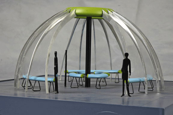 在作品展中,“生活设计”与“概念设计”并存,达到了和谐统一。“生活设计”即以市场为导向,讲究设计的实用性,它体现了设计者对现实生活的关注和对市场脉搏的把握。“概念设计”不以当前实用为目的,而是探索研究对未来设计的引导性,是对未来起引领作用作品的尝试,带有强烈的实验性。作品《环境小品式公共座椅》把城市公共雕塑与公共座椅自然的融合在一起,在一定程度上节约了公共空间资源,使它在形态、色彩上达到视觉的统一,适合在大型休闲场所安置,具备很高的实用价值。作品《概念车》在车的顶部使用了大幅度玻璃天窗,使用的陀螺仪技术在任何情况下都能保持平衡,另外可调式座椅、电脑智能系统、内置摄像头等都展现出了崭新的设计理念。