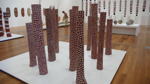 昆士兰现代艺术博物馆主要收藏展览收藏现当代艺术,特别是亚太地区的当地艺术,以及澳大利亚土著艺术。考察当天正在举办《第五届亚太地区当代艺术展》(The 5th Asia-pacific Triennial of Contemporary Art,每三年举办一次)和《北昆士兰土著艺术展》(Indigenous Art From North Queensland)体现了该现代艺术馆的主题,现代艺术代表了东西艺术交流大背景下,亚太地区有代表性的艺术观念。而土著艺术的收藏和展览则深刻体现了澳大利亚对澳洲本土艺术保护的重视,也是文化多元发展的体现。