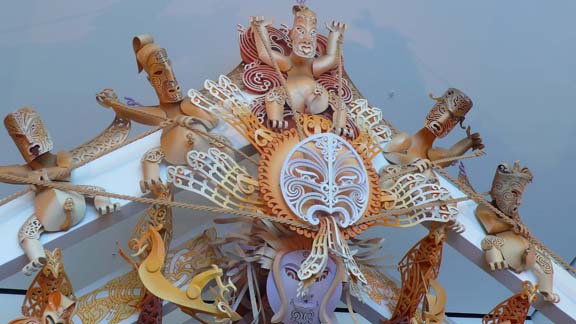 在位于惠灵顿的新西兰国家博物馆国家中,土著民族用品及艺术占据博物馆的主体,另外还有地质及生物标本等。毛利人土著艺术大到房屋、图腾柱、交通工具、祭祀场所,小到生活用品等无所不包,采用实物、复制品和影像资料等方式展示。与其他国家相比,新西兰的土著文化保护的是最好的,博物馆是新西兰历史文化的写照,也是传承文化的重要场所,是新西兰人从小就经常光顾的场所。