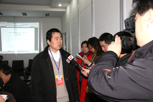 3月1日,我校2007年招生专业考试济南考点开考,上午6时30分,校领导李世平、刁在祥,纪委副书记王进生,审题专家,家长代表和山东电视台、山东教育电视台、齐鲁电视台、山东商报、济南时报、生活日报、都市女报、山东画报社等媒体记者聚集到招生现场办公室。在纪委人员、考生家长代表和媒体记者全程监督下,媒体代表抽取了书法及素描考试试题。