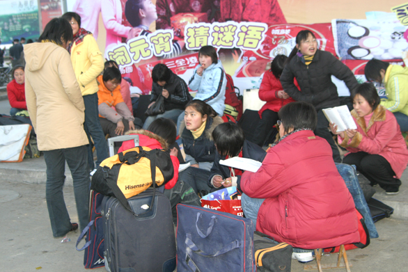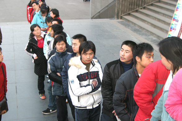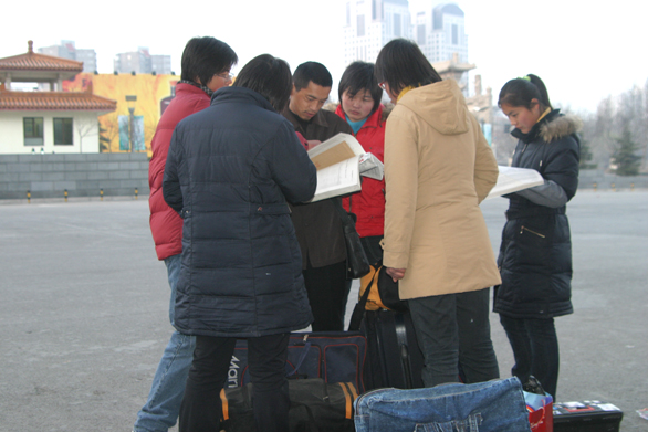 2月27日一早, 在报名现场入口处,50多位背着行李、画包的考生吸引了我们的视线。他们有的在仔细阅读报考指南,有的围在一起讨论报考专业,有的还在忙着吃早餐。记者随即对这一组特别的队伍进行了现场采访。