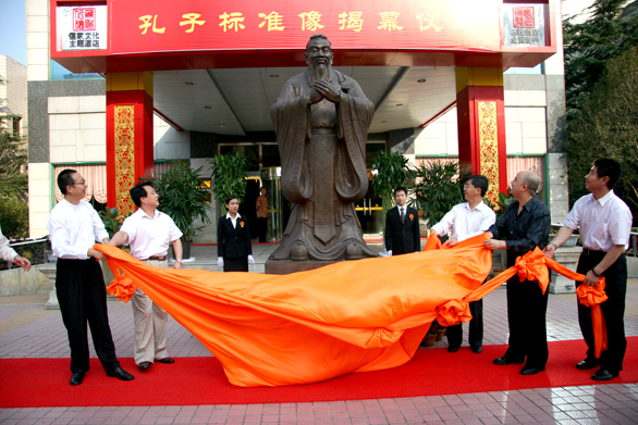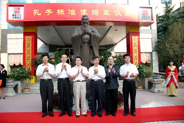 9月23日,孔子诞辰2557年祭孔大典前夕,由我校潘鲁生院长牵头,科研处胡希佳处长主创的孔子标准像在孔子故里曲阜揭幕。潘鲁生院长应邀出席揭幕仪式,并为标准像揭幕。使用孔子标准像制作的奖章于同日在曲阜举行的首届联合国教科文组织“孔子教育奖”颁奖仪式上首次使用,孔子作为联合国的文化教育“使者”走向了世界。 孔子标准像制定工作是按照发起、征集、评选、初稿、定稿等五个步骤进行,孔子标准像定稿以唐代吴道子的行教像为基础,参考历史文献,最大限度地吸收历代孔子像作品中的优秀元素,同时尊重专家意见,关注社会反映,充分听取各界建议的基础上,集思广益,最终定稿,突出体现孔子作为伟大思想家、教育家的风范与气质,力求形与神的和谐统一。最终定稿的孔子标准像为255.7厘米的青铜圆雕。根据孔子标准像同时推出半身像、浮雕、线描等多种形式的孔子像。 孔子标准像定稿形象还是定位在布衣、平民形象上,与初稿相比,定稿在精神和气质上有所突破,更注重从体现孔子“仁”和“礼”的思想内涵出发,表现他的博大和儒雅;定稿的标准像更加慈祥,特别是眼神的表现更加温和,同时照顾到目光在各个角度与观众的交流,让孔子给人以可亲可敬的感觉;定稿的孔子标准像更强调了“国”字脸、宽鼻、阔眉、长髯的特征,力求把一个仁爱宽厚、正气浩然、朴实庄重、令人景仰的具有山东人相貌特征的长者形象呈现给世人,较初稿时的形象塑造更加丰富和饱满。 孔子是举世公认的文化名人,中国历史上伟大的思想家、教育家、儒家学说创始人,是中华民族优秀传统文化的代表,是中国的历史文化名片。我校此次主创孔子标准像具有重大历史意义,解决了长期以来存在的孔子形象不一、不利于传播和推广的问题,还对倡导世界范围内的标志性孔子形象,弘扬传播孔子文化,起到积极的推动作用。