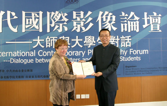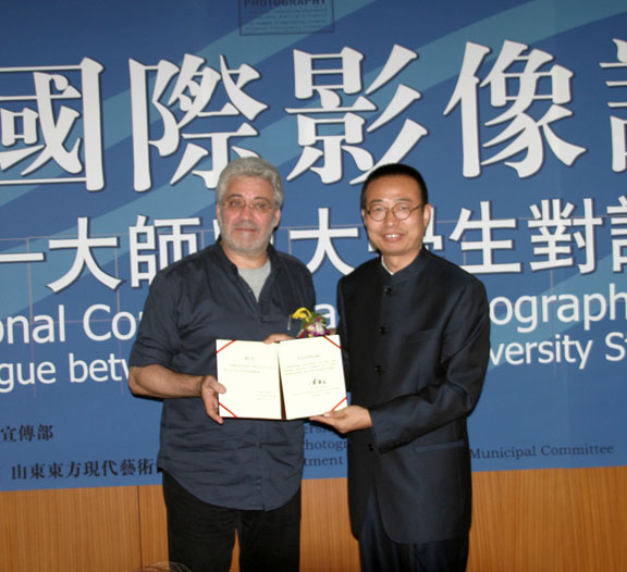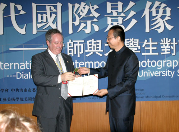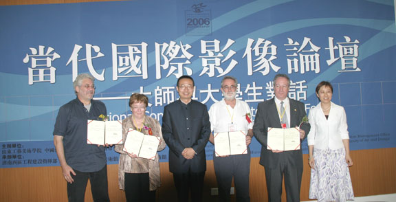 9月25日下午2点,山东工艺美院授聘客座教授仪式在学校贵宾接待室举行。仪式由副院长李新博士主持。来自美国、比利时、阿根廷、墨西哥、意大利等国的知名摄影师、专家、学者及学校师生约百余人参加了授聘仪式。 受聘为山东工艺美院客座教授的摄影大师有:罗伯特•普雷基(ROBERT PLEDGE)、佩德罗•梅耶尔(Pedro Meyer Richheimer)、尼科尔•比利奥(Billiao NICOLE)、贝尔林吉埃里•尼科拉斯(BERLINGERI•NICOLO)。罗伯特•普雷基是著名国际摄影大师,美国联系新闻图片社共同创始人兼总裁,世界著名图片编辑和策展人,他曾被《美国摄影》杂志评为世界摄影最具影响力百人之一。佩德罗•梅耶尔是著名当代国际摄影大师,墨西哥摄影委员会(Mexican Council of Photography)的奠基人兼主席,拉丁美洲最初的三个摄影讨论会的组织者,举世闻名的摄影专业网站“零域”(Zone Zero)的创建者、策划者、主管和主任编辑。比利奥•尼克尔是欧洲“无国界摄影组织”创始人之一、副主席,国际摄影组织(FIAP) “国际摄联优秀摄影家”(EFIAP),“美国摄影学会”(PSA)4星级会员。贝尔林吉埃里•尼科拉斯是国际摄影著名摄影家,阿根廷布宜诺斯艾利斯阿根廷工业大学(UADE)数码影像教授, “国际摄影艺术联合会”(FIAP)“国际优秀摄影家”(EFIAP)。 院长潘鲁生为四位客座教授颁发了证书并致词。潘院长致词时说:山东工艺美院是中国31所艺术高校之一,与欧洲和美国的同类院校相比,她是一所年轻的大学。欢迎四位国际著名的摄影大师加盟山东工艺美院的学术团队。潘院长认为,当代的摄影艺术应该是科学、文化和艺术的有机结合。国际摄影大师的加盟给摄影艺术教育的发展带来了更大的空间。山东工艺美院的五年规划要求打造国际艺术交流的平台,在2008年将承办欧洲设计艺术院校联盟的学术年会同时举办第二届摄影双年展,希望客座教授和摄影大师再次光临山东工艺美院。 罗伯特•普雷基(ROBERT PLEDGE)代表受聘客座教授致词,他表示山东工艺美院是一个非常开放的大学,希望看到这个大学有一个更好的发展。授聘仪式在热烈的掌声中结束。